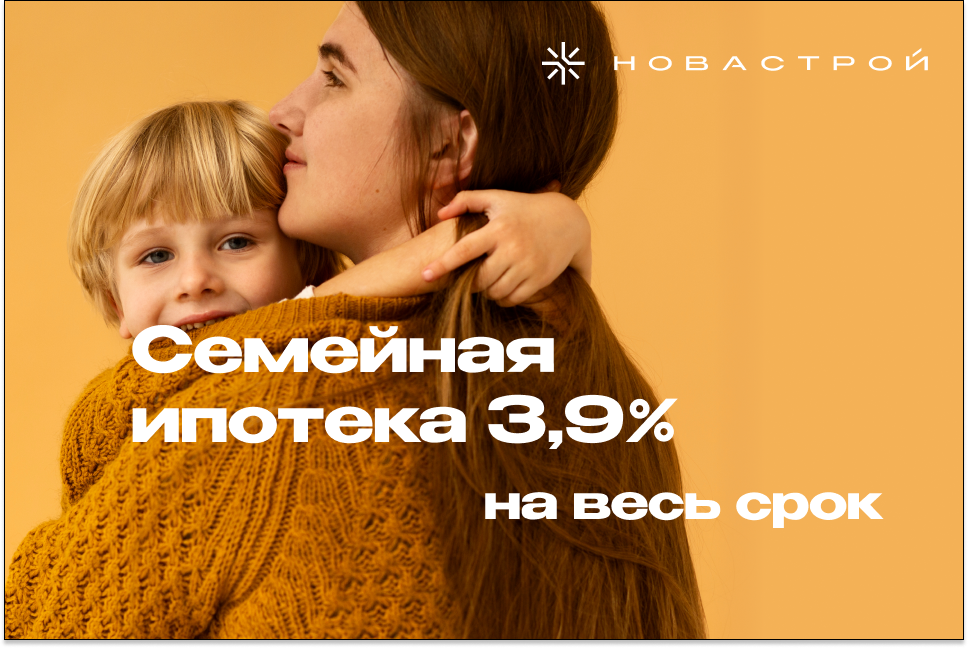 Семейная Ипотека по ставке 3,9% с первоначальным взносом 20% без удорожания. Застройщик берет на себя выплату комиссий банкам. Возможно использовать материнский капитал в качестве первоначального взноса. Акция распространяется на квартиры в проектах: